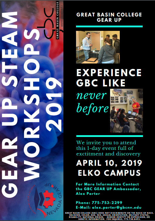 For more information contact GBC GEAR UP Ambassador: alex.porter@gbcnv.edu or 775-753-2299