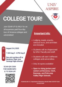 Nevada GEAR UP and UNLV ASPIRE are hosting an all-expenses paid four-day tour of Arizona colleges and universities! Rising juniors and seniors at our Nevada GEAR UP schools were invited to sign-up for this fun opportunity to wrap up this summer and kick-start the new school year!