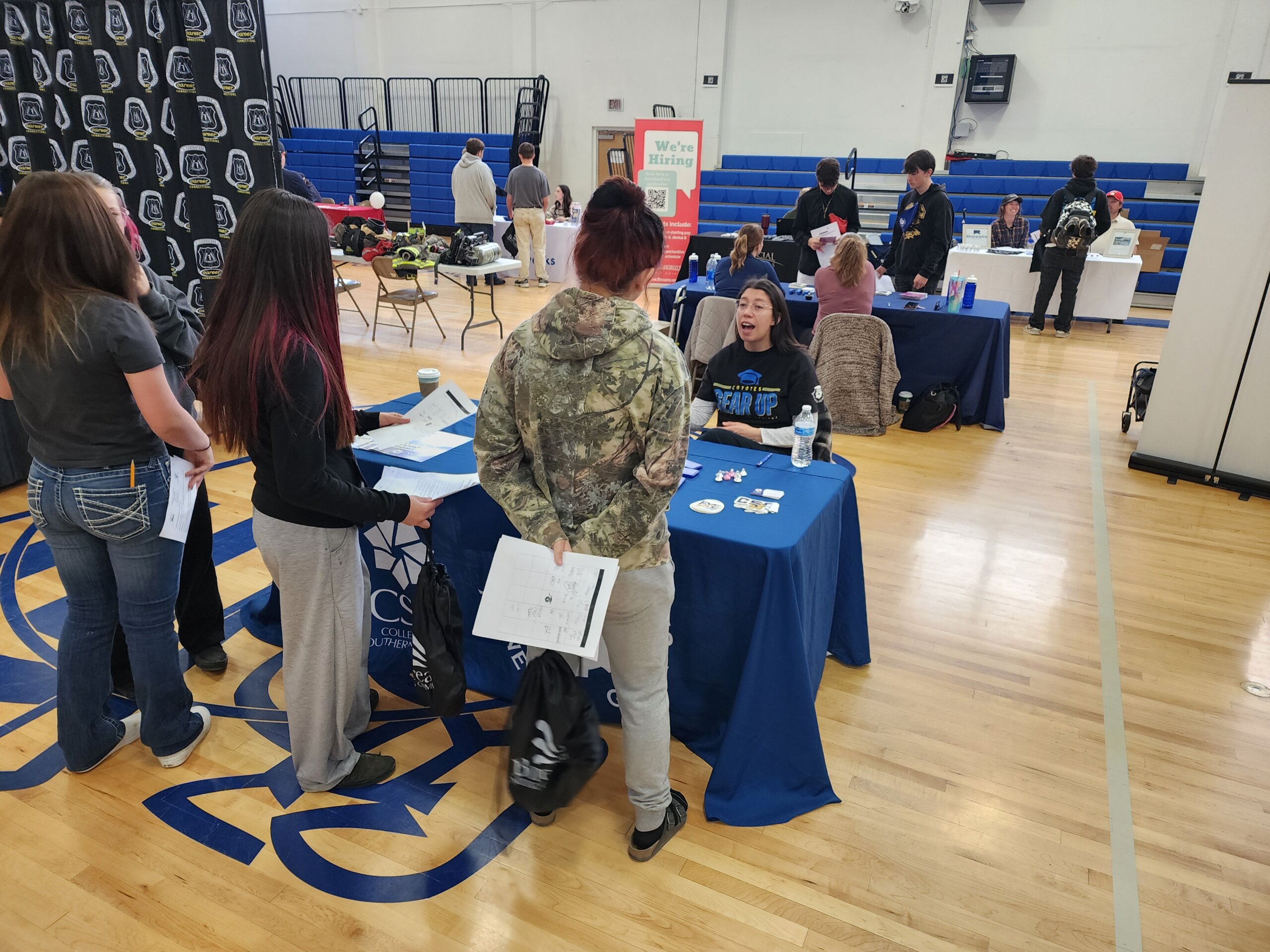 #GEARUPWeek at Hug High School. They invited several businesses to participate in talking to students in regards of their profession. Monday was Military/Law Enforcement Day. Tuesday was Business Day. Wednesday was Medical/Science Day. Today is Trade/Hospitality Day, and tomorrow they [ ]